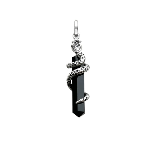 925 Sterling Silver Blackened Onyx Snake Pendant Vintage Jewelry For Men & Women
