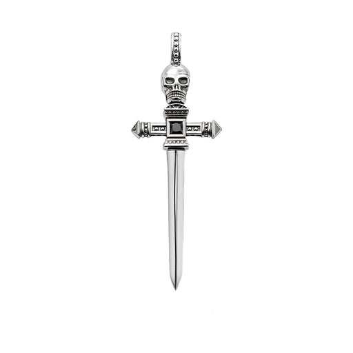 925 Sterling Silver Vintage Skull Sword Pendant European Style Jewelry For Men & Women