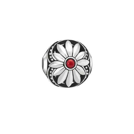 925 Sterling Silver Red Petals Flower Beads European Charm For Fashion Jewelry
