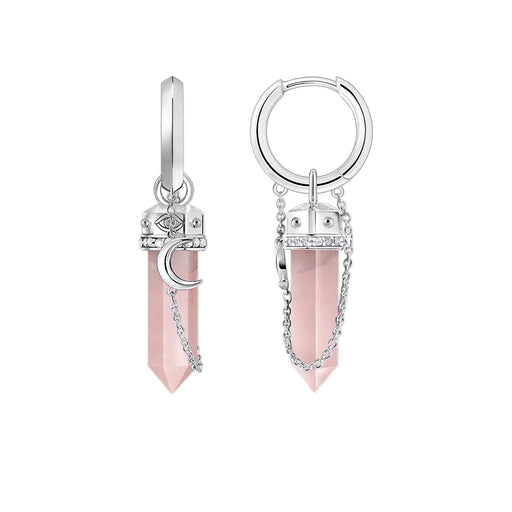 925 Sterling Silver Rose Quartz Hexagonal Hoop Earrings