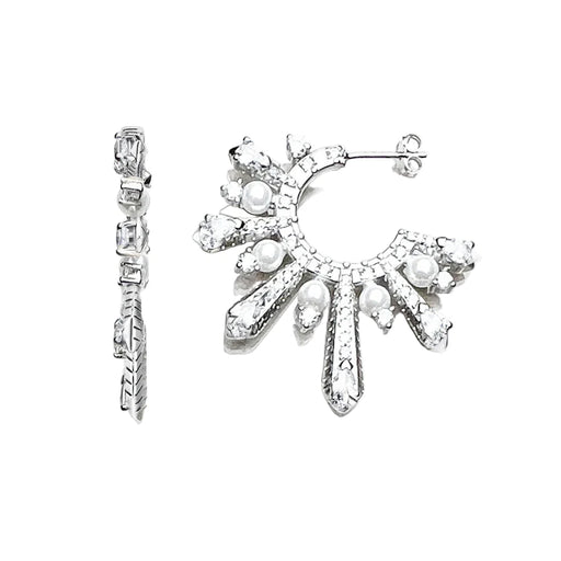 925 Sterling Silver Wave Hoop Earrings With White Stones