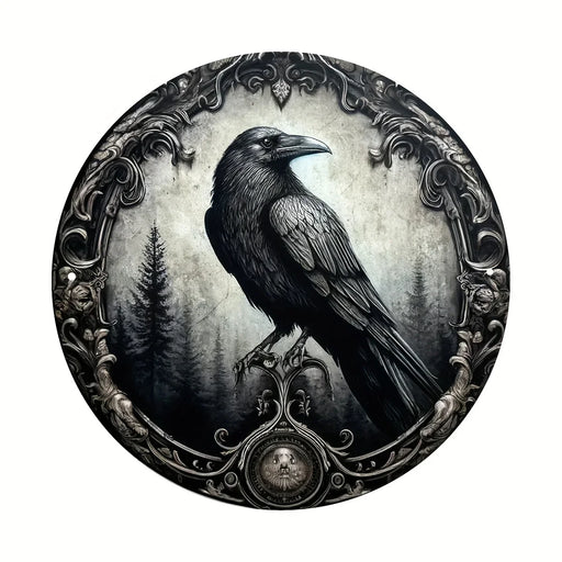Vintage Crow Wreath Metal Sign Round Wall Art For Home Cafe & Bird Lovers