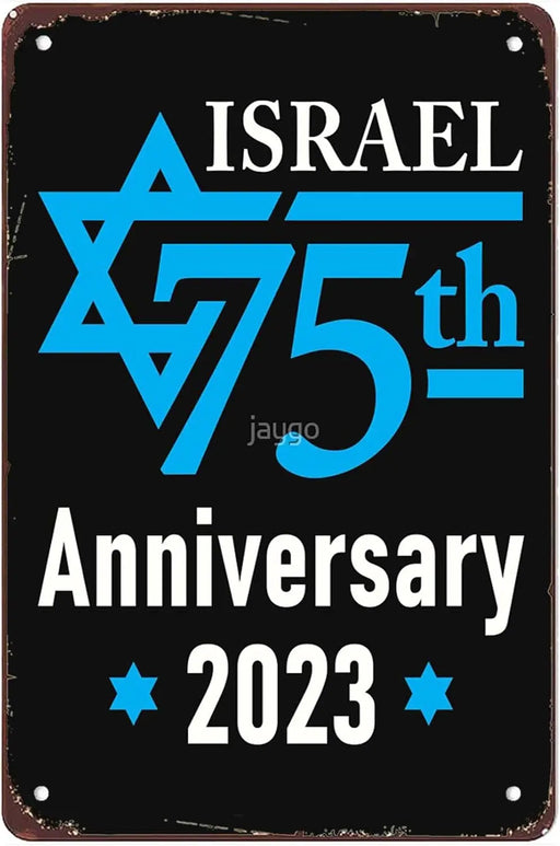 Vintage Israel 75Th Anniversary Tin Sign For Kitchen Or Office
