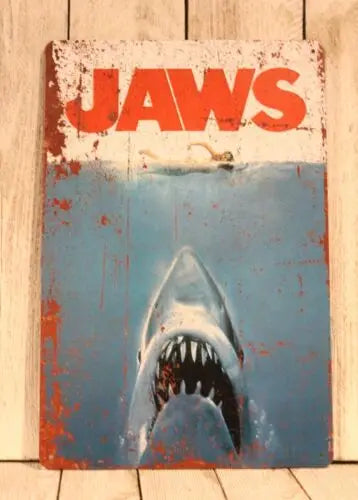 Vintage Jaws Movie Poster Tin Sign Rustic Shark Film Decor