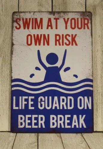Swim Safely With Lifeguard On Beer Break Tin Sign
