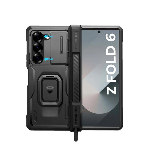For Samsung Galaxy Z Fold 6 2024 Hinge Protection Screen Protector Case With Ring Stand & S Pen Holder & Slide Camera Case