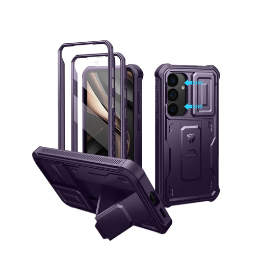 For Samsung Galaxy S25 Holder Heavy-Duty Shockproof Rugged Case With Built-In Slide Camera Case & Screen Protector