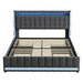• Integrated LED light strips on three sides of the headboard and an aluminum light channel at the foot of the bed enhance the ambiance. The lighting adds a stylish touch and provides practical illumination for a cozy atmosphere.
