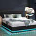 Rgb Led Bed Frame King Size Gas Lift Base With Storage Black Leather