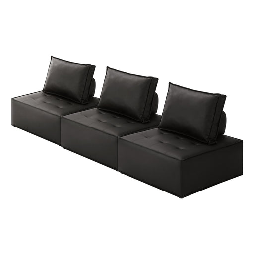 3Pc Modular Sofa Lounge Chair Armless Tofu Back Pu Leather Black