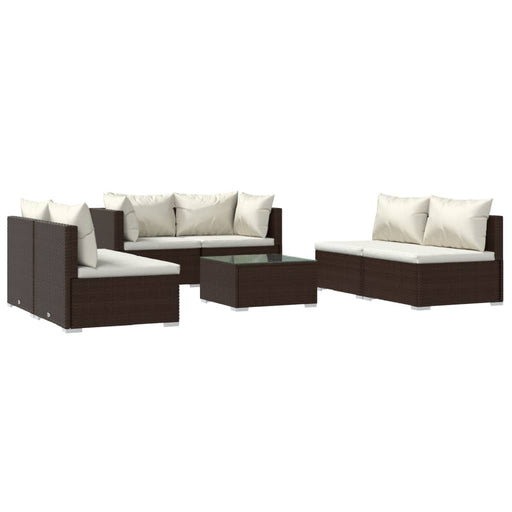 7 Piece Garden Lounge Set With Cushions Poly Rattan Brown Tobonon