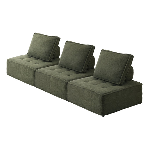 3 Seater Boucle Modular Sofa Lounge Chair Armless Tofu Back Green