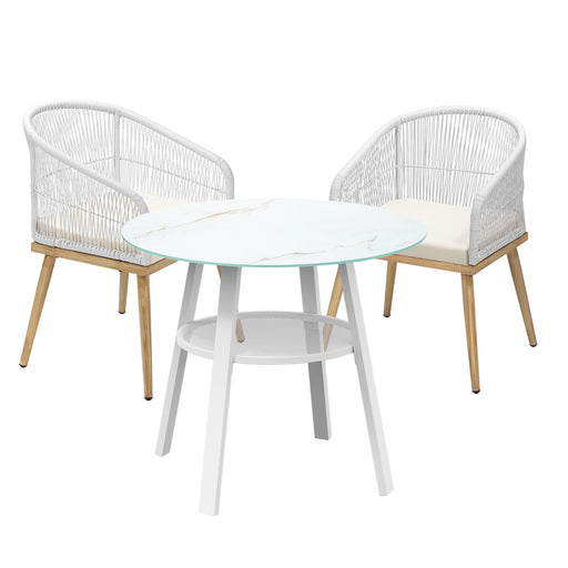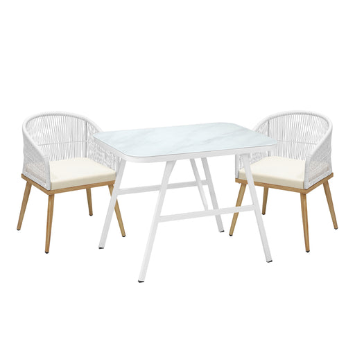 Outdoor Dining Set Patio Furniture Setting Garden Marble-Style Table 3Pcs