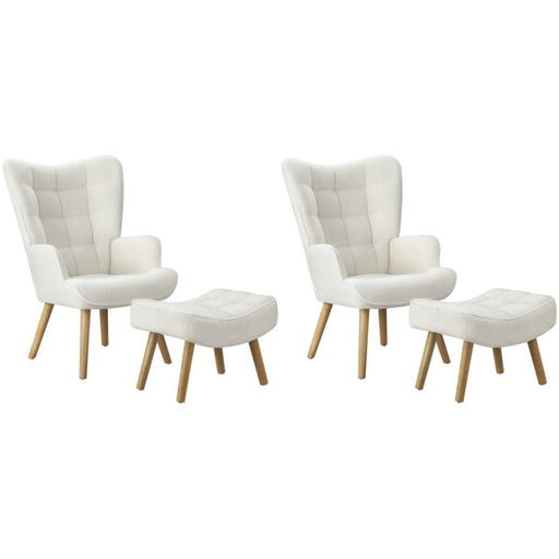 2X Armchair Lounge Chair Ottoman Accent Armchairs Sherpa Sofa White
