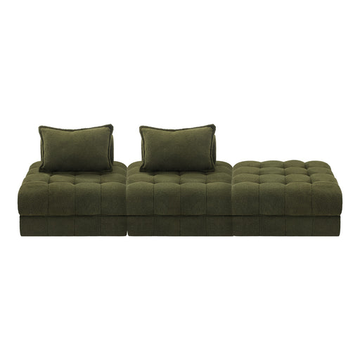 3 Seater Boucle Modular Sofa & Ottoman Set Armless Tofu Back Green