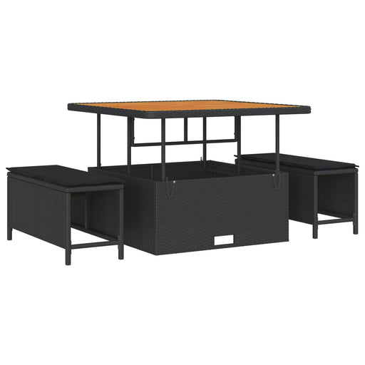 3 Piece Garden Dining Set With Cushions Black Poly Rattan Acacia Axbbikbl