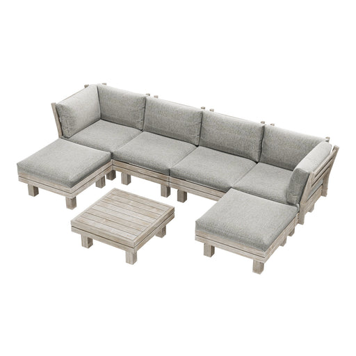 7Pcs Outdoor Sofa Set Wooden Lounge Setting Table Chair Patio Furniture