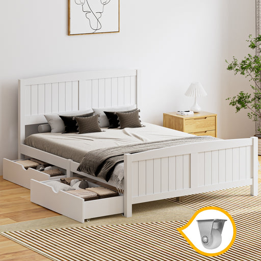 Wooden Bed Frame Double Size Base With Trundle Storage Drawers White