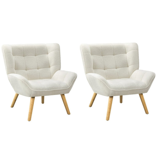 2X Armchair Accent Chairs Sofa Lounge Sherpa Upholstered Tub White