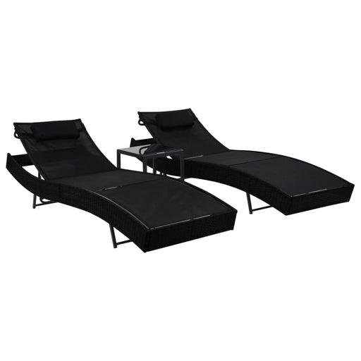 Sun Loungers 2 Pcs with Table Poly Rattan and Textilene Black Aankt