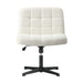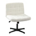 Mid Back Armless Office Desk Chair Wide Seat Boucle White No Wheels
