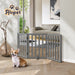 Wooden Pet Gate Dog Fence Safety Stair Barrier Security Door 3-Panel Grey