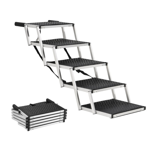 Foldable Dog Ramps 5 Steps Adjustable Height Dog Stair Portable Aluminium