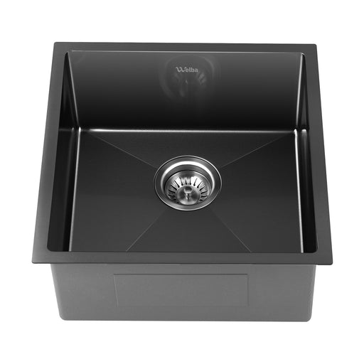 Kitchen Sink 44X44Cm Stainless Steel Single Bowl Basin With Waste Black