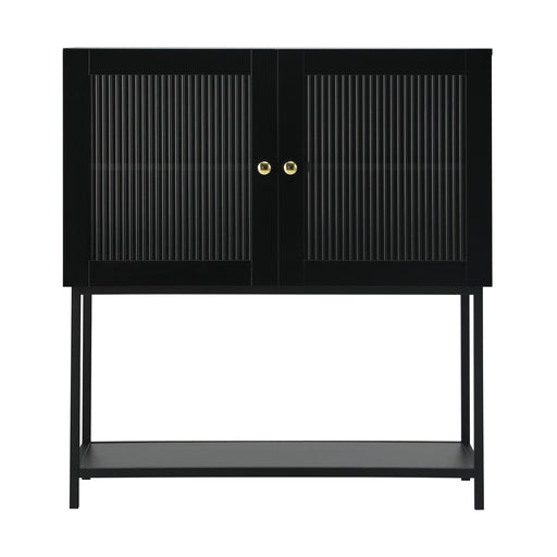 Original price $466.99 - Original price $466.99Original price$466.99$466.99 - $466.99Current price $466.99| /Features: • Perfect for compact spaces • Black painted finish frame • Two reeded tempered glass doors • Two closed shelves • Metal base • Chrome g...