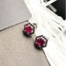 • 1 x 925 Sterling Silver Red Hexagon Stud Earrings Handcrafted Gift For Women