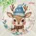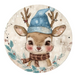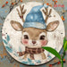 Round Holiday Metal Sign With Cute Deer Design 7.8X7.8 Inches