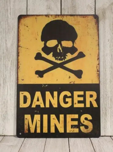 Vintage Rustic Danger Mines Tin Sign Boys Room Decor