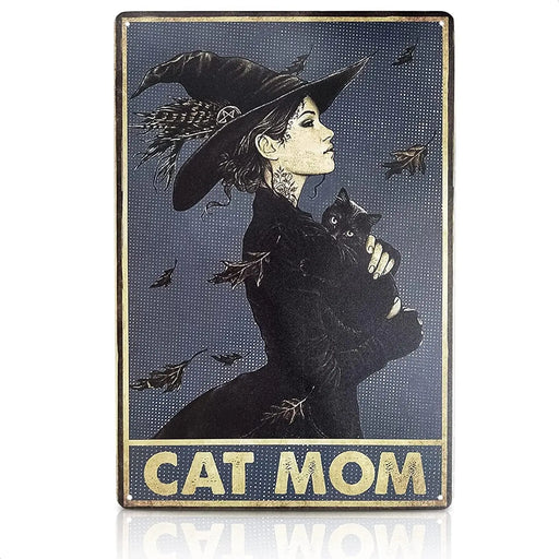 Vintage Cat Lover Metal Sign Witch Cat Mom Wall Art For Halloween