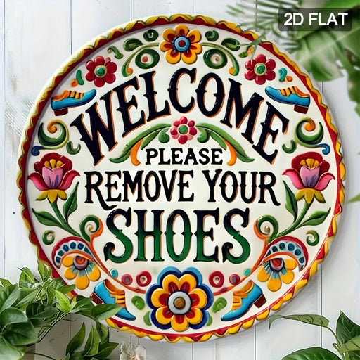 Welcome Please Remove Shoes 2D Flat Aluminum Wall Decor 7.8X7.8 Inch