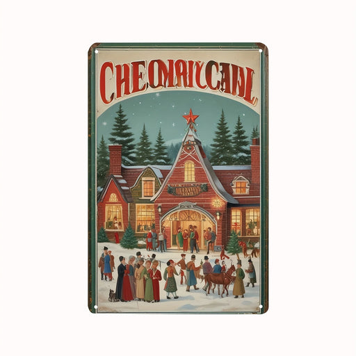 Set Of 4 Vintage Metal Christmas Tin Signs