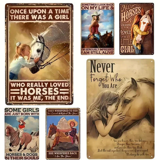Happy Life Girl With Horse Retro Sign For Bar Or Cafe Wall Decor