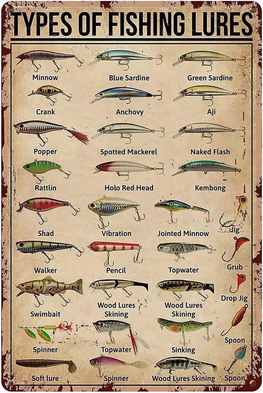 Vintage Fishing Lures Tin Sign 1D Bathroom Wall Decor