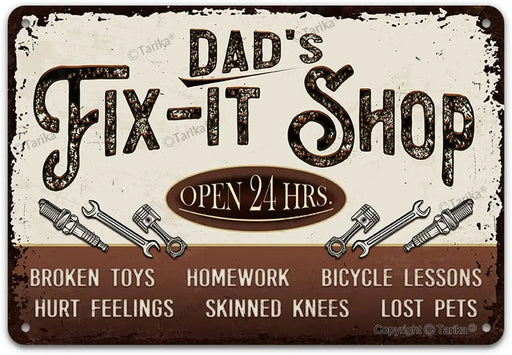 Vintage Dad'S Fix-It Shop Tin Sign Garage Decor