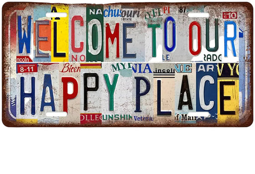 Vintage Welcome Tin Sign Happy Place Wall Decor 12X6 Inch