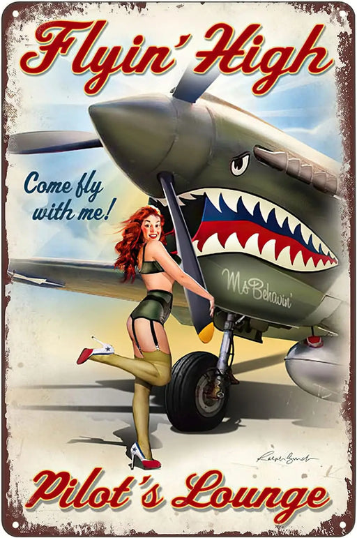 Vintage Pin Up Girl Metal Tin Sign Military Decor