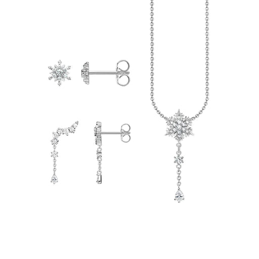 925 Sterling Silver Snowflake Necklace & Earring Set Trend