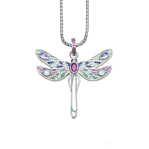 925 Sterling Silver Dragonfly Pendant Necklace Colourful Chain Fine Jewelry For Women