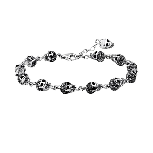 925 Sterling Silver Punk Skull Pave Link Chain Bracelet For Women Men Party