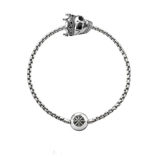 925 Sterling Silver Skull King Karma Beads Bracelet Chain Fits Pendants & Charms For Men & Women