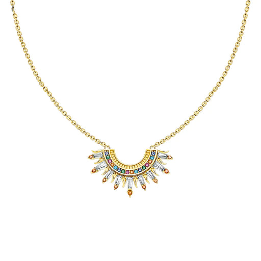 925 Sterling Silver Autumn Sun Beams Necklace Gold Plated Colourful Bohemian Jewelry For Women