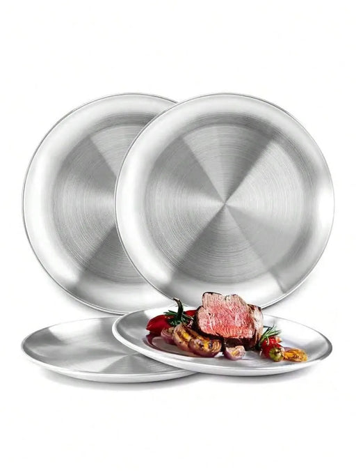 1 / 3 Piece Stainless Steel Round Plates For Bbq Camping Picnic Home Use