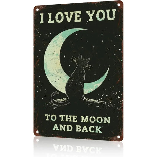 1D Metal Tin Sign I Love You To The Moon And Back Black Cat Retro