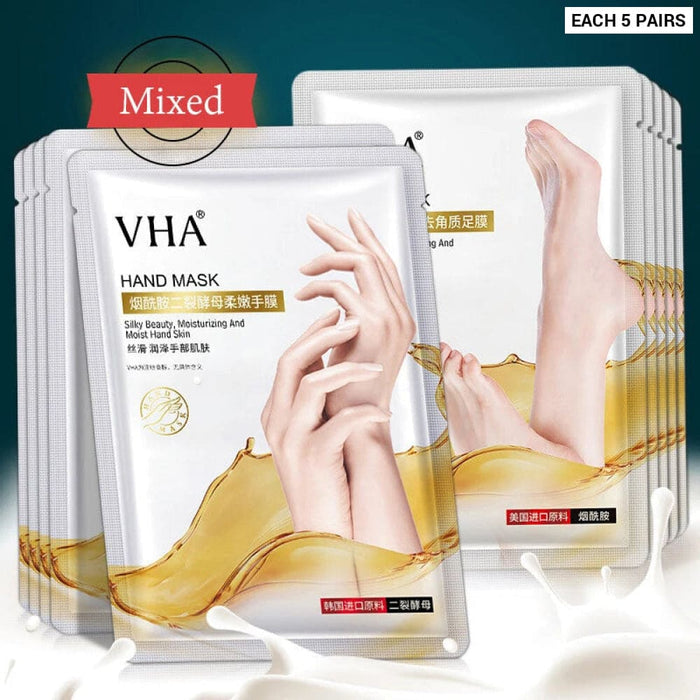 10 Pairs Nicotinamide Goat Milk Moisturizing Exfoliating Nourishing Hand & Foot Masks