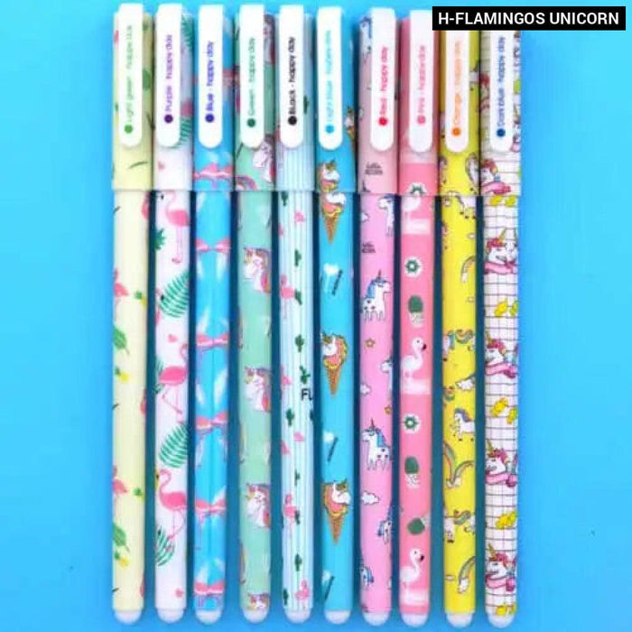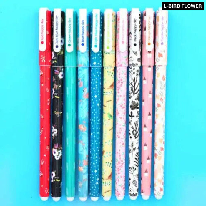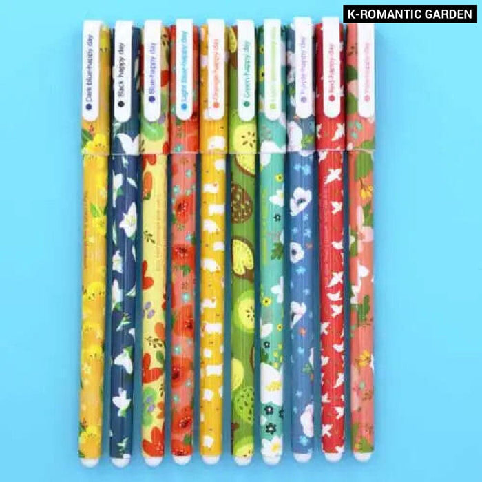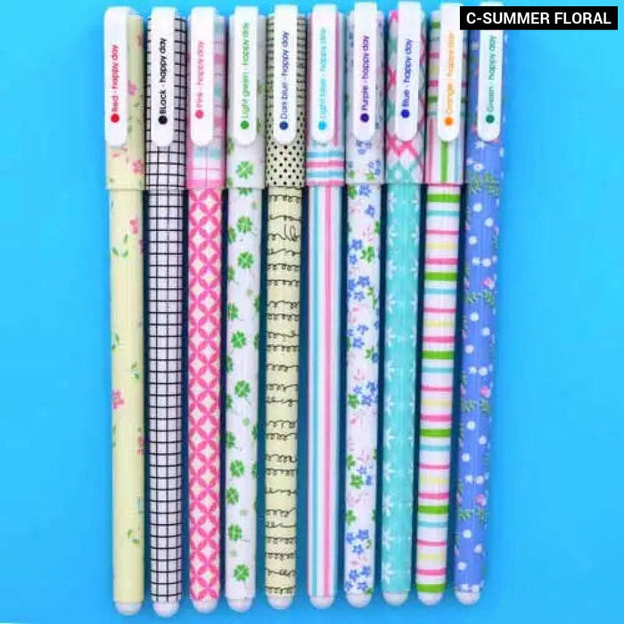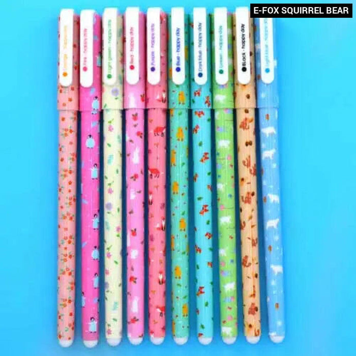 10 Piece Gel Pen Set Floral Animal Starry Designs 0.5mm Tip