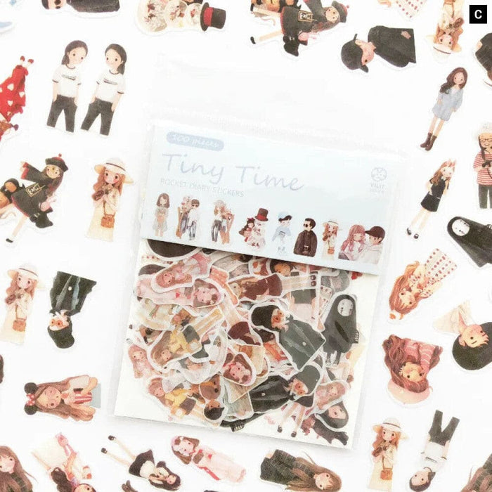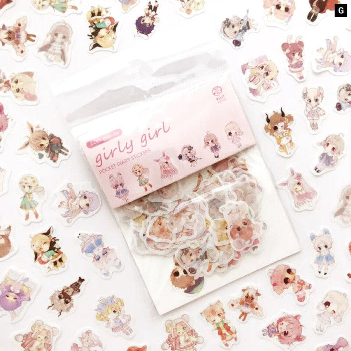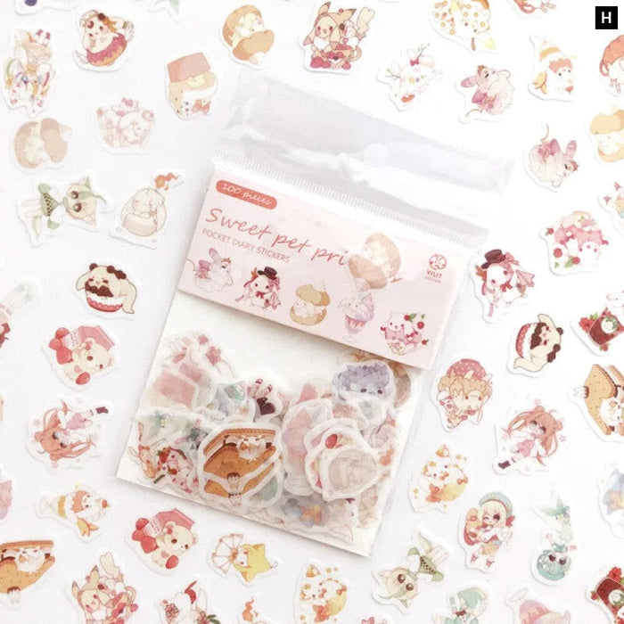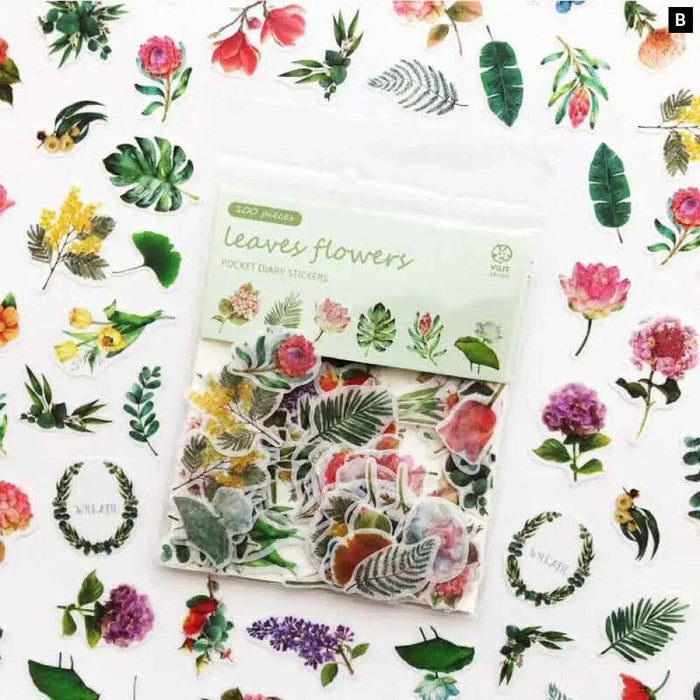 100 Pieces Kawaii Cat Green Plant Stickers for Journal Scrapbooking Stationery